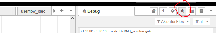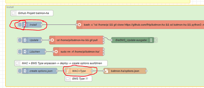 Die Daten werden in der App, auf dem Display und im Webinterface angezeigt. Ihr könnt den Flow einfach importieren und dann das Inject auslösen, um die Installation zu starten. Anschließend nur noch in der Function die MAC-Adresse und den BMS-Typ eintragen – zum Test einmal Starten.