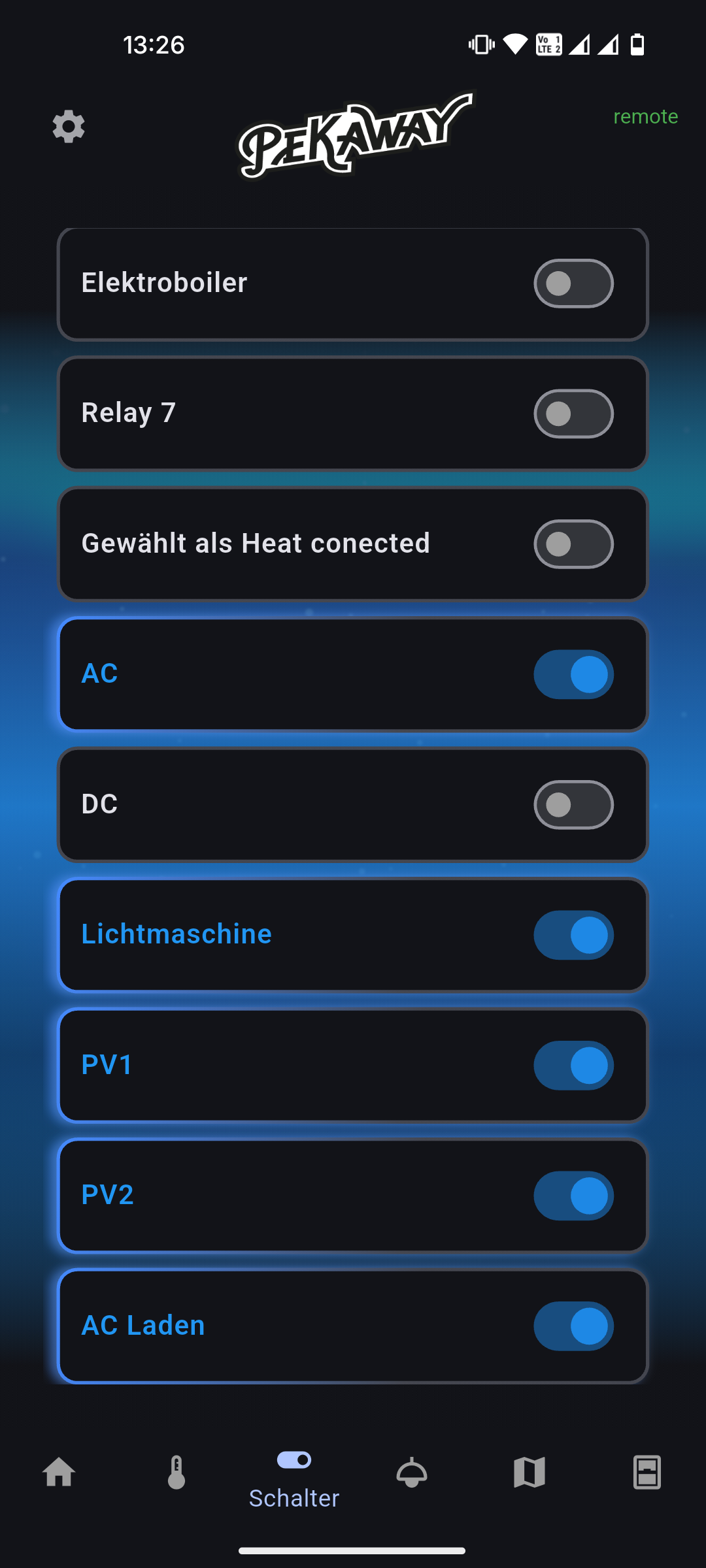 â hoffentlich die anderen Schalter (PV lichtmaschine AC Laden, leider sehr kompliziert)