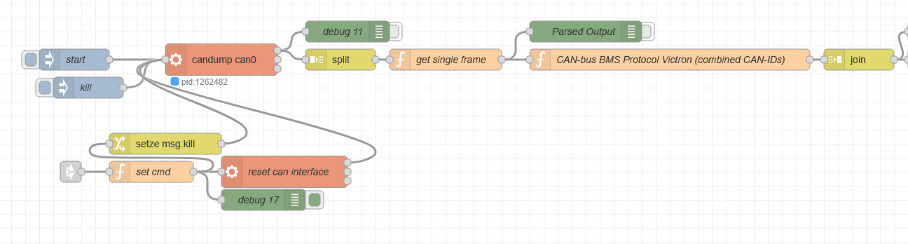 Der Flow geht noch weiter, mit Dashboard Nodes etc. und einem automatischen Reset/Neustart des CAN-bus, sollten 5min lang keine Daten mehr kommen. Ich hänge den kompletten Flow mit an ist noch nicht final, aber wird so bzw. so ähnlich ins Image kommen.