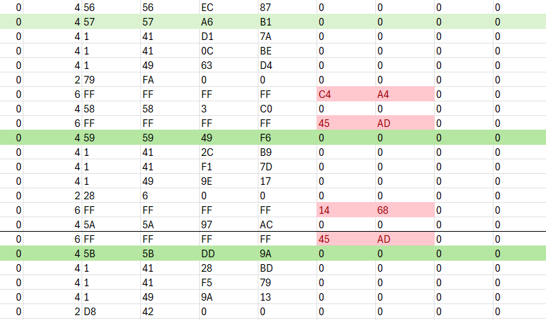 FF FF FF FF ?? ?? 00 00 → AC an UND aus ?!?