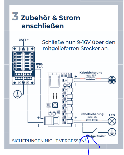 Auf der von dir verlinkten Zeichnung sind nochmal Sicherungen auf dem Plus eingezeichnet. Im aktuellen Dimmy sind ja 4 Sicherungen eingebaut. Braucht man die zusätzlichen Sicherungen dann auch noch?