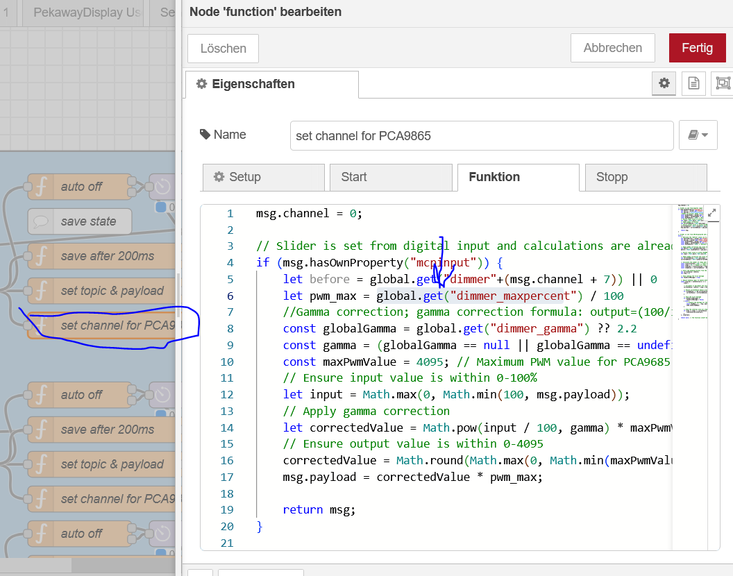 Wenn das funktioniert, kannst du den slider und die Nodes dahinter kopieren, änderst maxprzent in maxpercent01 - 08 dann brauchst du auf der dimmerseite nur noch die 01-08 einzutragen