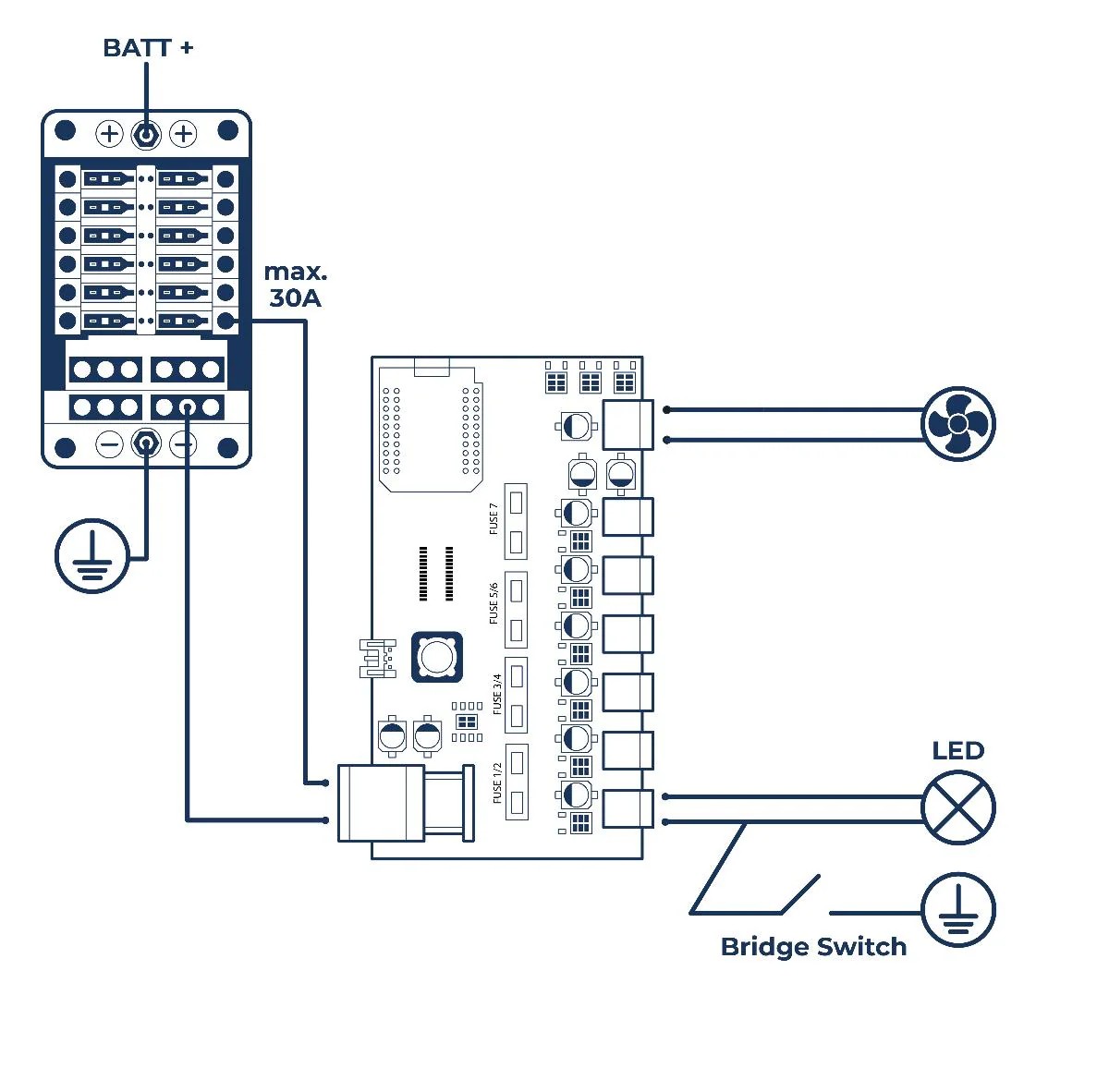 - Ich habe einen LED Streifen in der Heckklappe, wo +12V auf den Dimmy Port Nr.4 gehen. Die Masse des LED Streifen geht hier ebenfalls auf die Fahrzeug Karosse (gegen GND)