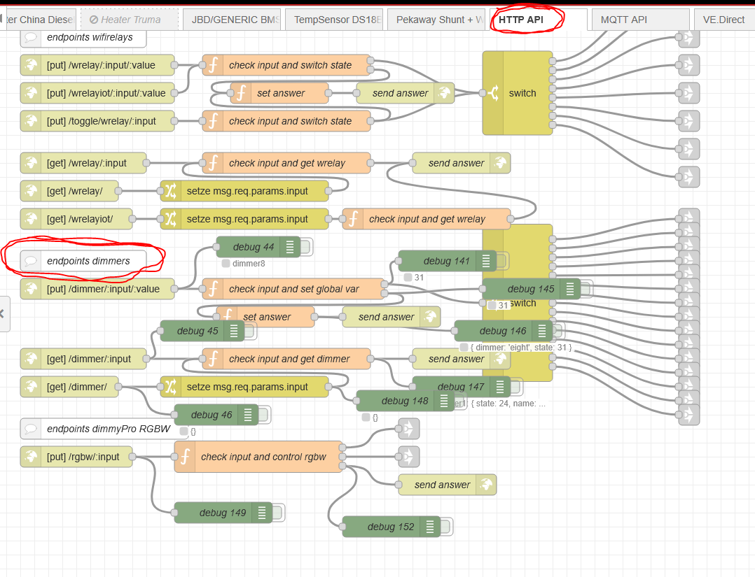 dadurch ist die Konfiguration, und die Bedienung im Webinterface nicht mehr möglich, um die slider des Prodimmers in der APP und im Display Nutzen zu konne mußte die globale Variable i2c_dimmyPro auf true gesetzt werden. Da bei Markus die Dimmernamen für den Prodimmer undefiniert waren, konnte er in der APP nicht angezeigt werden, daher wurden auf der Seite noch die Namen des Prodimmers eingebbar gemacht. und der Dimmer erschien auch in der APP.