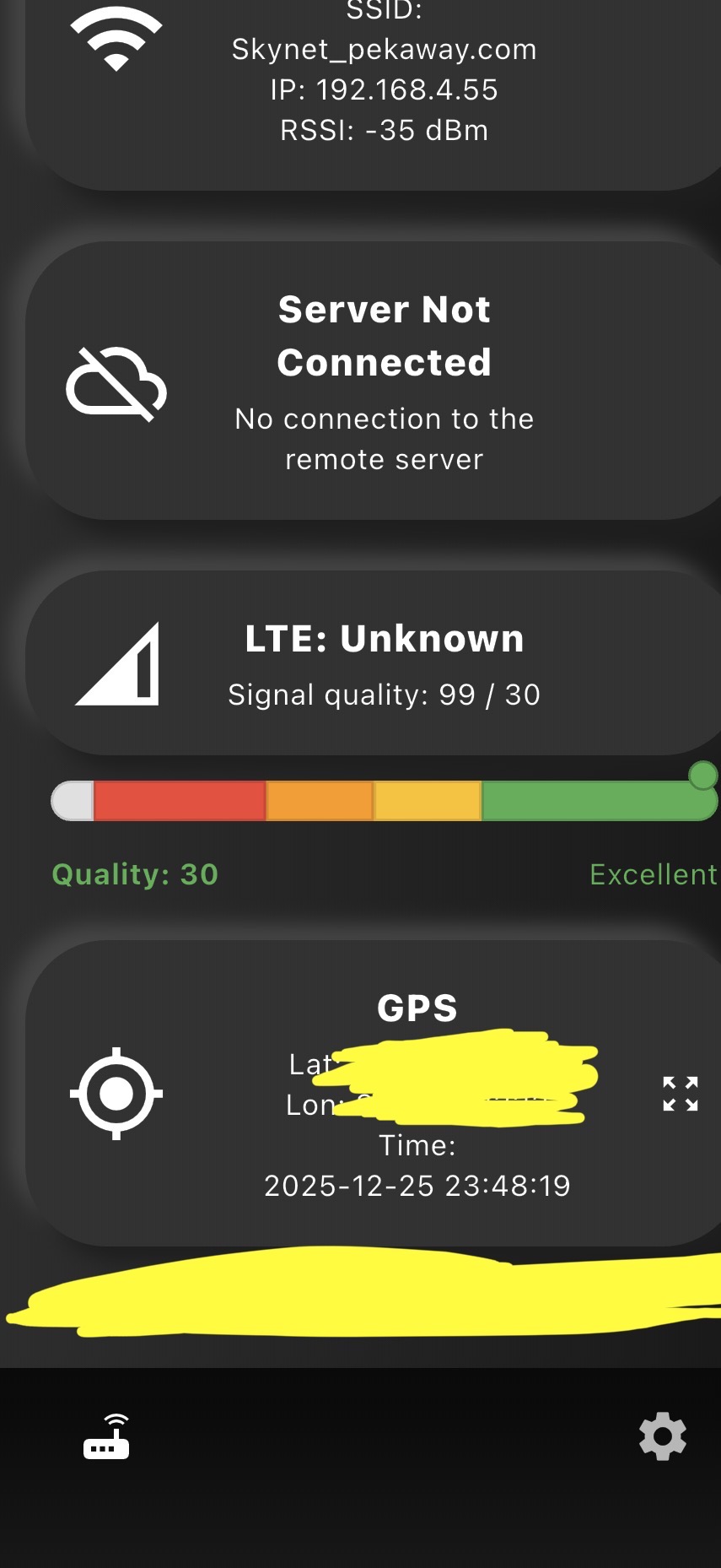 auf deinen Screenshots wird 99/30 Empfang angezeigt. Hier ist die Anzeige in der App leider noch nicht optimal, denn es wird „Excellent” angezeigt, obwohl das Gegenteil der Fall ist. 99 bedeutet, dass kein Empfang vorhanden ist.