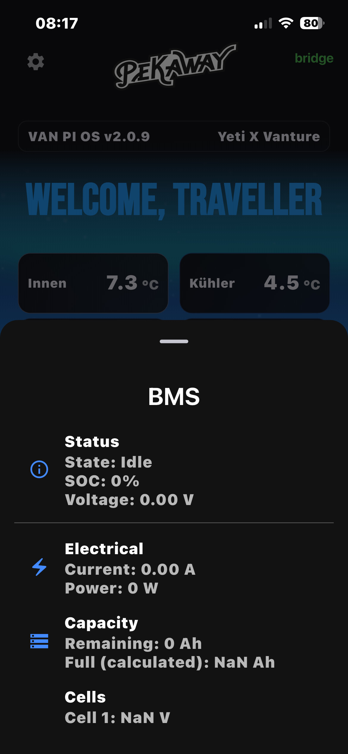 Nun ja bei mir wird nichts angezeigt. Trotz Victron Shunt. Ist aber wahrscheinlich der Ective Batterie geschuldet, dessen BMS nicht an zu sprechen ist. Das geht ebenso wenig über den Victron MPPT.