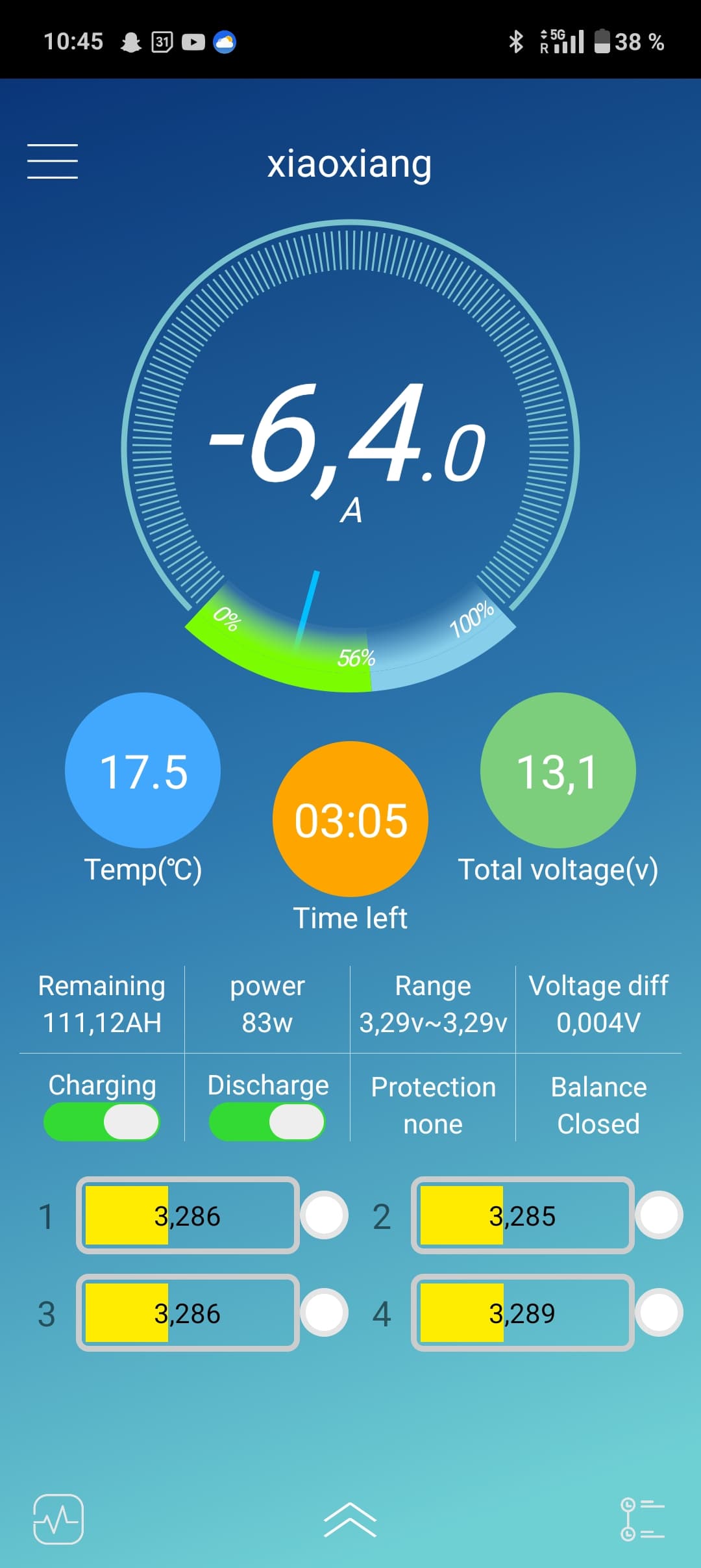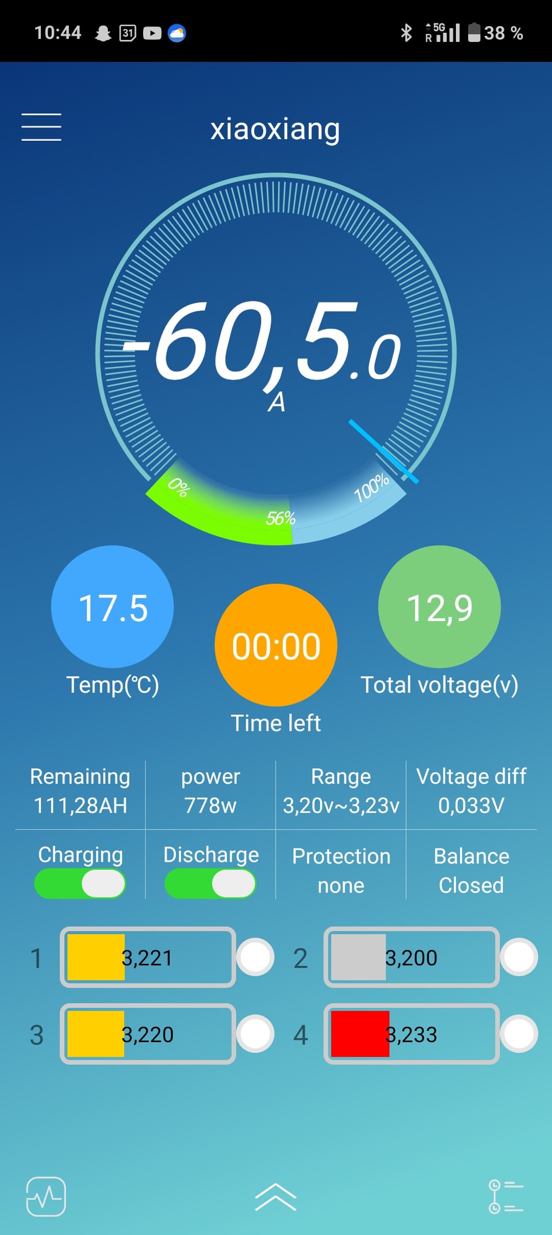 ich habe seit neuestem einen Wechselrichter bei mir im System integriert. Nun komme ich zum Problem: wenn ich einen Verbraucher im Wechselstromkreis betreibe (in dem Fall eine Nespresso Kaffeemaschine) schwankt der Strom der gezogen wird enorm. So werden zeitweise über 60A gezogen (für den Bruchteil einer Sekunde) was ja eigentlich nur schwer vorstellbar scheint… und dann geht’s wieder runter auf ca 6A. Und selbst wenn zeitweise wirklich 60 A gezogen werden kann es ja nicht sein, dass danach sofort die Hälfte der Kapazität beider 200 AH Batterien dahin ist. Ich habe jetzt nach dem Kochen zweier Kaffee mit der Nespresso nurnoch 110 AH in beiden Batterien. Sprich von eigentlichen 400 AH plötzlich nurnoch 200AH? Kann mir das einer erklären? Irgendwas muss ich beim jbd falsch eingestellt haben. Anders kann ich mir die ganze Nummer nicht erklären.