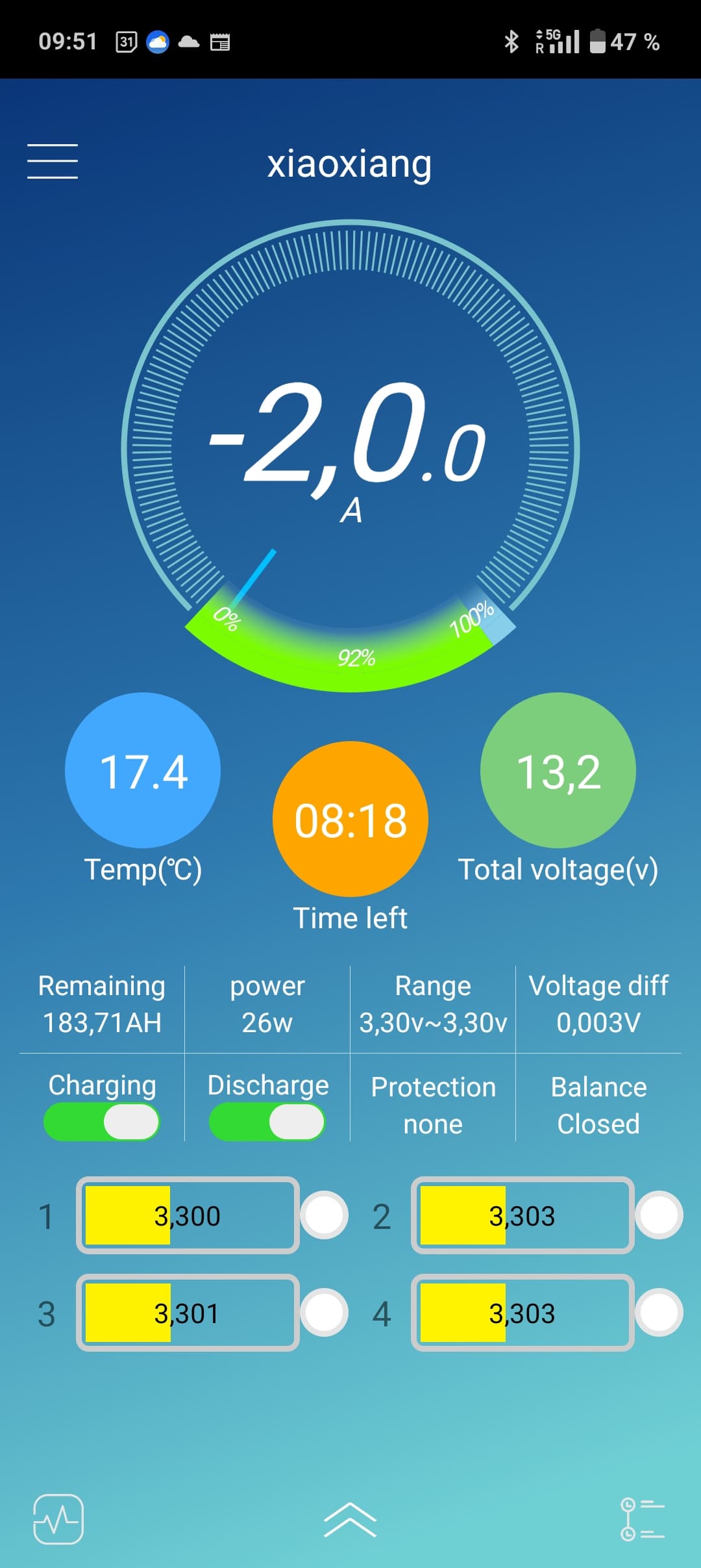 Ja die Batterien verhalten sich gleich. Der Shunt ist noch nicht auslesbar da das gesamte VanPi noch nicht in Betrieb ist. Kann derzeit nur mit der Software des BMS und der Victron Software arbeiten.