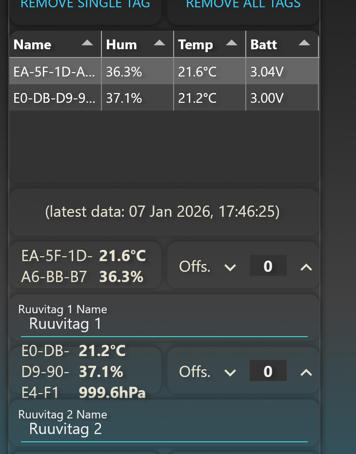 Anschluss von 2*Ruuvitag Pro 3in1, Anzeige im Dashboard ok