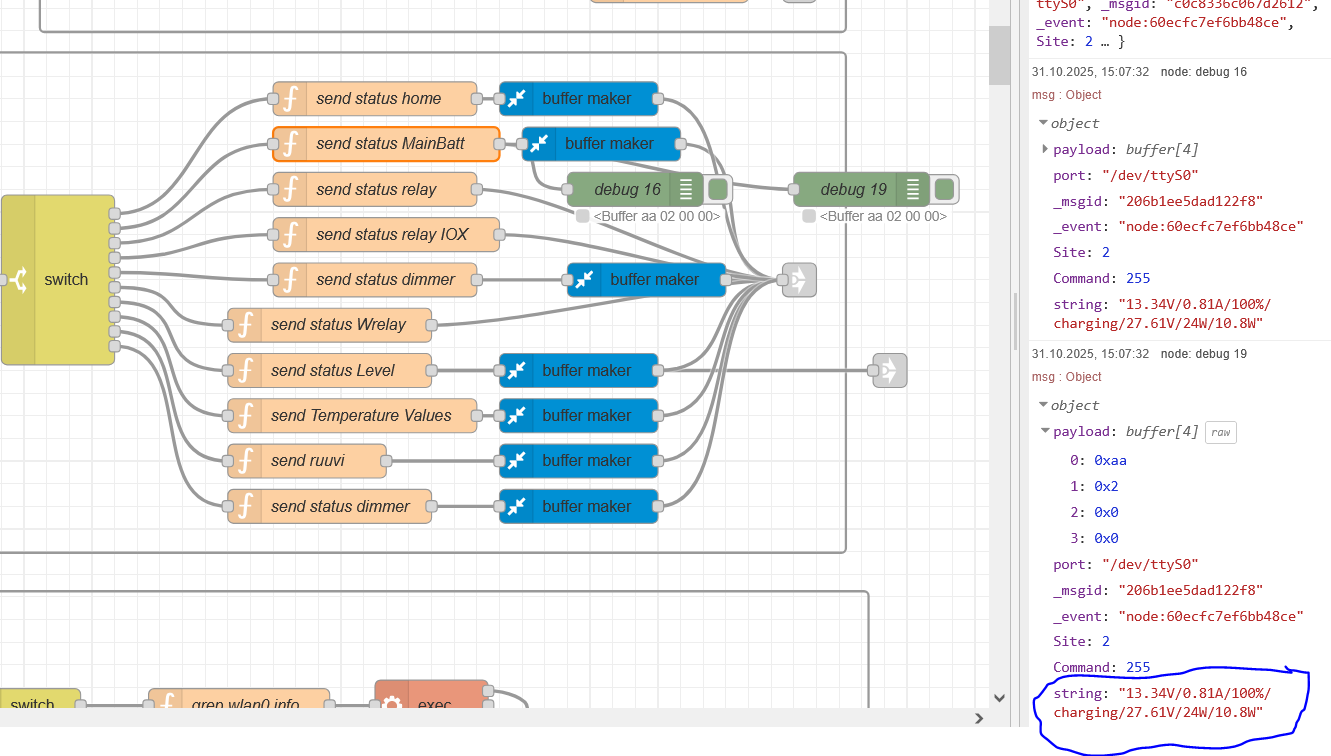 In send StatusMainBatt stehen alle erwarteten Daten global.get”*****”